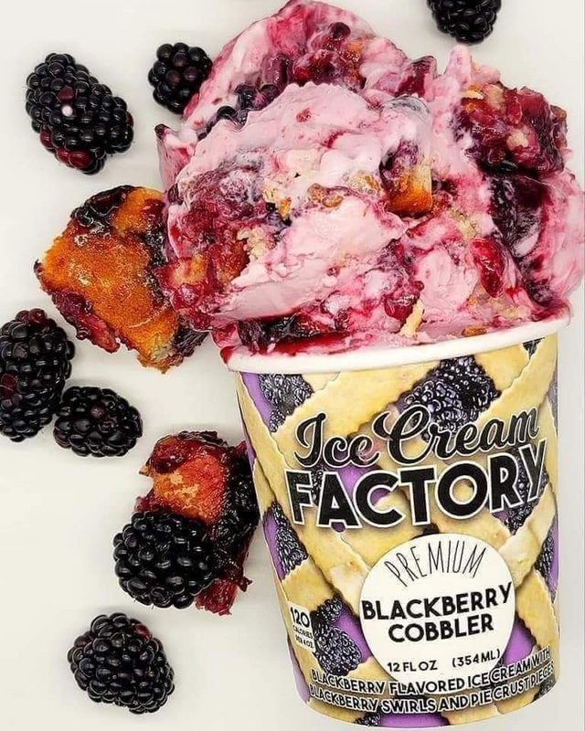 & delicious dessert turned scrumptious ice cream. You've got to try this blackberry flavored ice cream with sweetened crushed blackberries, and layered throughout, you'll find homemade pie crust