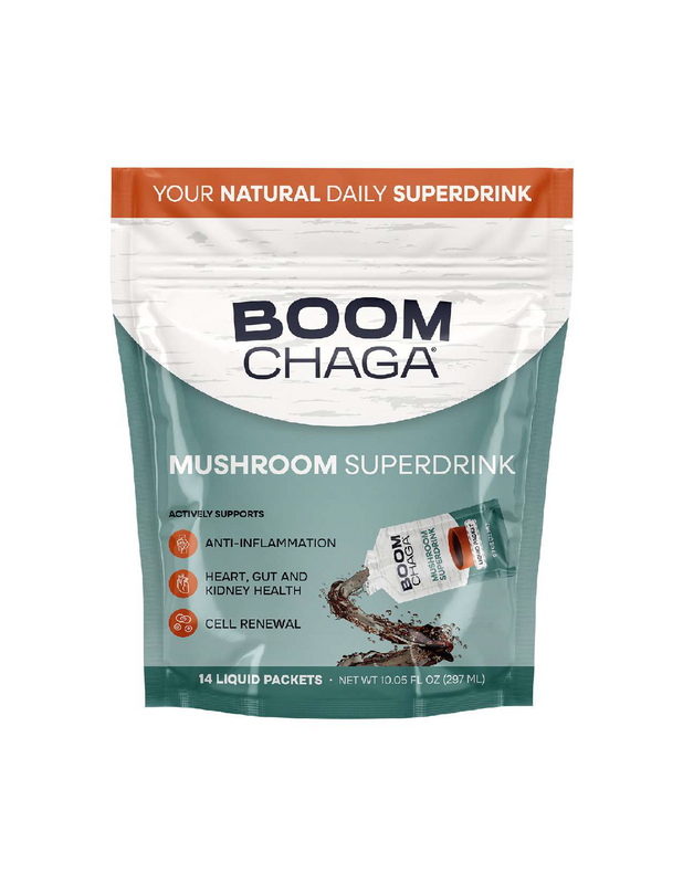 BOOM Chaga is an all natural, wild harvested chaga liquid extract, made 100% in the USA. Ideal when taken daily as is, or added to your favorite morning beverage, the patented processes deliver guaranteed high levels of betulinic acid, beta glucans, and zero oxalic acid. Optimizing the best chaga health benefits while removing any risk, BOOM Chaga's high quality, proprietary extract far exceeds the efficacy of other mushroom powders, pills and tinctures. (10 bags per case, each bag has 14ct)