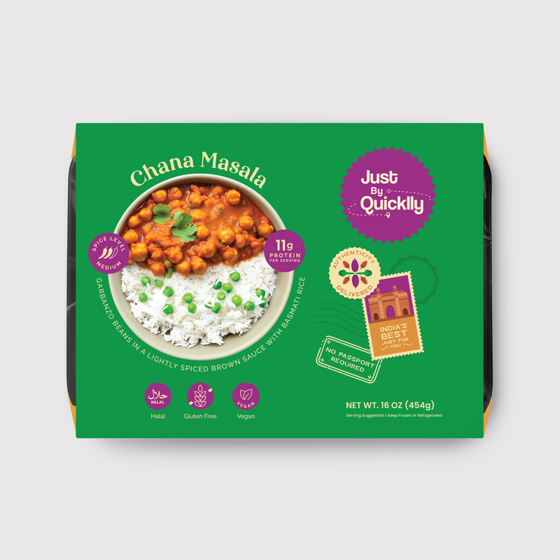 Rice: Water, Basmati Rice, Green Peas, Soybean Oil, Salt. Gravy: Water, Garbanzo Beans, Onions, Tomato (water, diced tomato, tomato paste, tomato juice, salt, calcium chloride, citric acid) Soybean Oil, Spices, Ginger, Garlic, Salt, and Green Chilies.