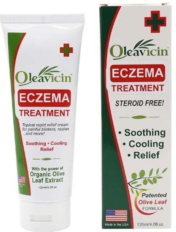 Oleavicin's Eczema Treatment cream is formulated with olive leaf extract and other natural ingredients to soothe, hydrate, and reduce inflammation for those suffering from eczema. Steroid Free!