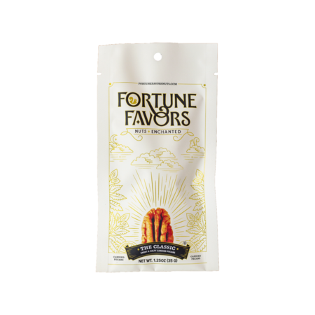 At Fortune Favors, we believe in the extraordinary potential of the humble pecan. Through our cooking process, we've unlocked the full flavor and texture of these pecans, creating a delicious and satisfying treat that is exceptional in taste and quality. Unlike traditional candied pecans that can be up to 50% sugar by weight, Fortune Favors pecans contain only 7% sugar, allowing the natural flavor of the nuts to shine through. We don’t just want our food to taste great—we want it to make you feel great. That’s why our candied pecans are plant-based, non-GMO, gluten-free, vegan, and full of protein, fiber, vitamins, and minerals. We own and operate a dedicated manufacturing facility and are SQF-certified. We believe in sprinkling joy and delight into everyday moments. Whether you're looking for a nutritious snack to fuel your adventures, an unexpected pop of flavor to add to your favorite recipes, or a unique and wholesome gift for someone special, Fortune Favors has you covered.