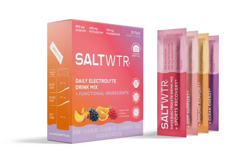 SaltWTR is a dual function electrolyte powder, providing the benefits of daily electrolytes with powerful functional ingredients and trace minerals to replenish and support your body daily, during, and after workouts.