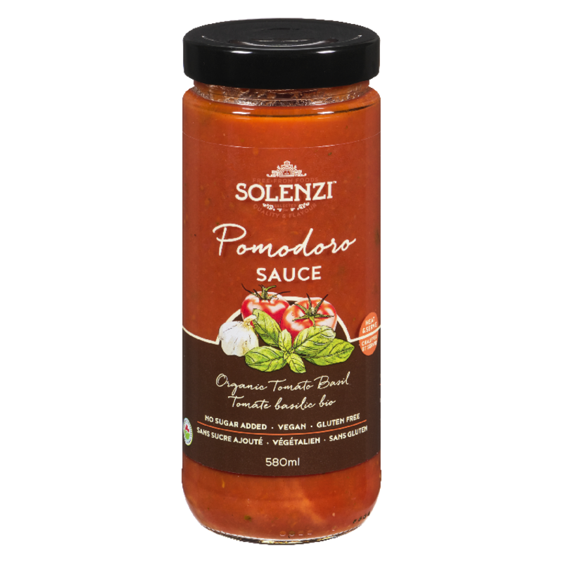 Organic tomatoes (Organic Crushed Tomatoes, Organic Tomato Juice, Citric acid), Organic Extra Virgin Olive Oil, Organic Basil, Organic garlic, Sea Salt.