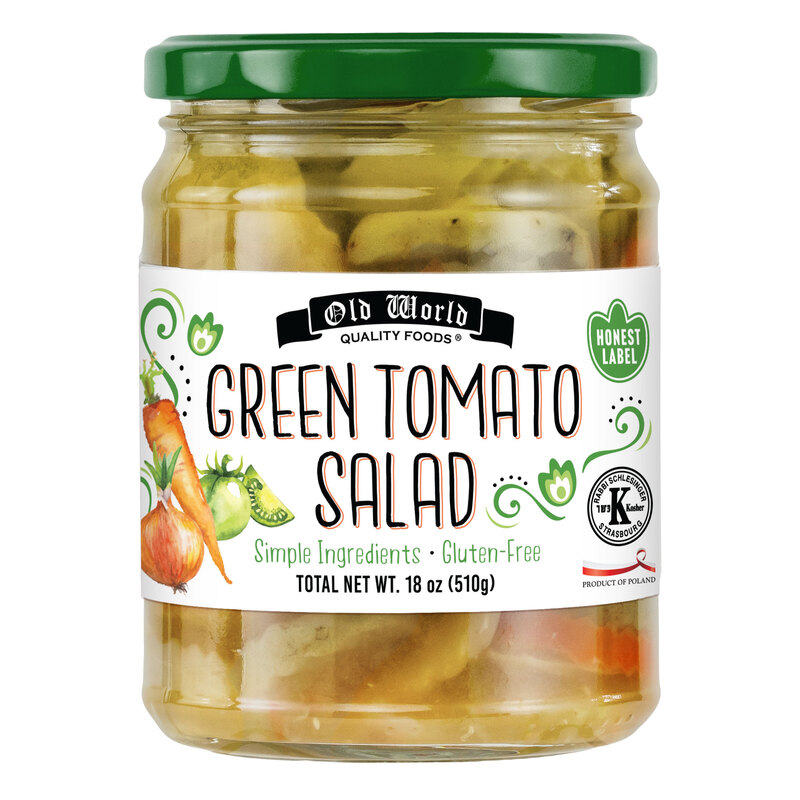 GREEN TOMATOES, WATER, CARROT, VINEGAR, RED PEPPER, ONION, SUGAR, SALT.