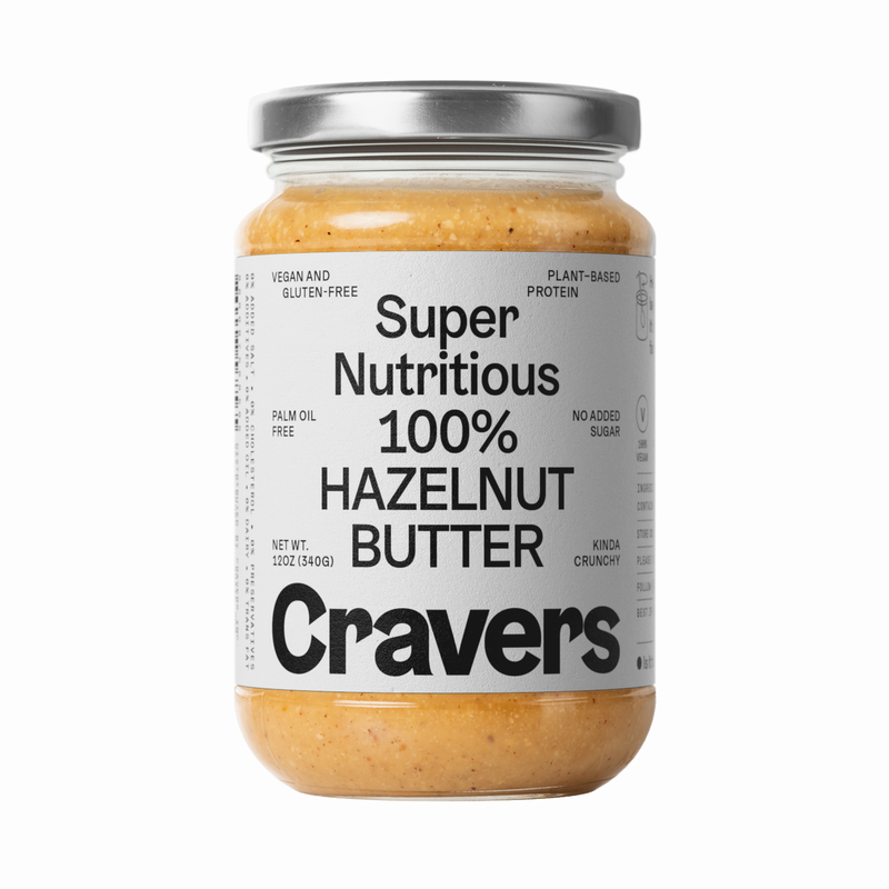 CRAVERS 100% Hazelnut Butter consists of nothing but the pure hazelnut butter itself—no added sugar, no nasty additives, vegan, gluten-free, no palm oil.