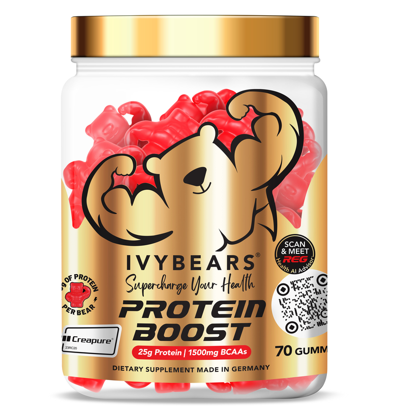 IVYBEARS® PROTEIN BOOST are formulated with thiamine, taurine, vitamin B6, B12, C, niacin and BCAA to improve performance. Improve recovery time. Boost muscle building and protect muscles gain.