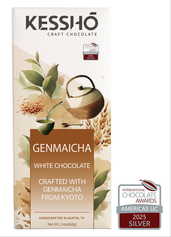 ⭐️Genmaicha White Chocolate Bar – Made with Kyoto-sourced genmaicha and creamy Peruvian cocoa butter. Toasted rice meets delicate green tea in this Japanese-inspired treat. ⭐️Tasting notes: Caramelized popcorn, green tea, buttery finish ⭐️This bar features genmaicha from a historic Kyoto teahouse, blending traditionally prepared roasted brown rice with green tea leaves in creamy Peruvian cocoa butter. The result captures genmaicha's essence-toasted grains melding with delicate tea notes in a Japanese-inspired white chocolate experience.