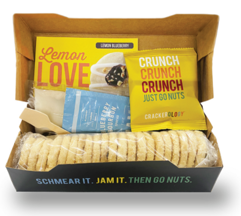 The **Lemon Blueberry Dessert Kit** from Crackerology offers a delightful fusion of tangy and sweet flavors, perfect for any occasion. This all-in-one kit includes buttery lemon shortbread cookies, creamy vanilla schmear, rich blueberry bourbon jam, and a crunchy almond topping. Designed for convenience, the kit is shelf-stable and requires no baking, making it ideal for parties, gifts, or spontaneous indulgence. Simply assemble the components to create an elegant and delicious dessert that evokes nostalgic memories with every bite.