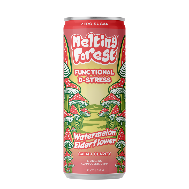 Melting Forest Watermelon Elderflower D-Stress Drink is a sophisticated and refreshing beverage designed to provide a serene and tranquil experience. It combines the juicy, sweet flavor of ripe watermelon with the subtle, floral notes of elderflower, offering a light and elegant taste profile. This drink is enriched with organic Reishi and Lion's Mane mushrooms, contributing to stress reduction and cognitive enhancement. It also features L-Theanine, Rhodiola, and Lemon Balm Extract, which are known for their ability to promote a calm mind and a relaxed body. This delightful blend of watermelon and elderflower is not just a pleasure to the palate but also a soothing elixir for the soul, making it the perfect choice for those seeking to unwind and de-stress in a natural and flavorful way.