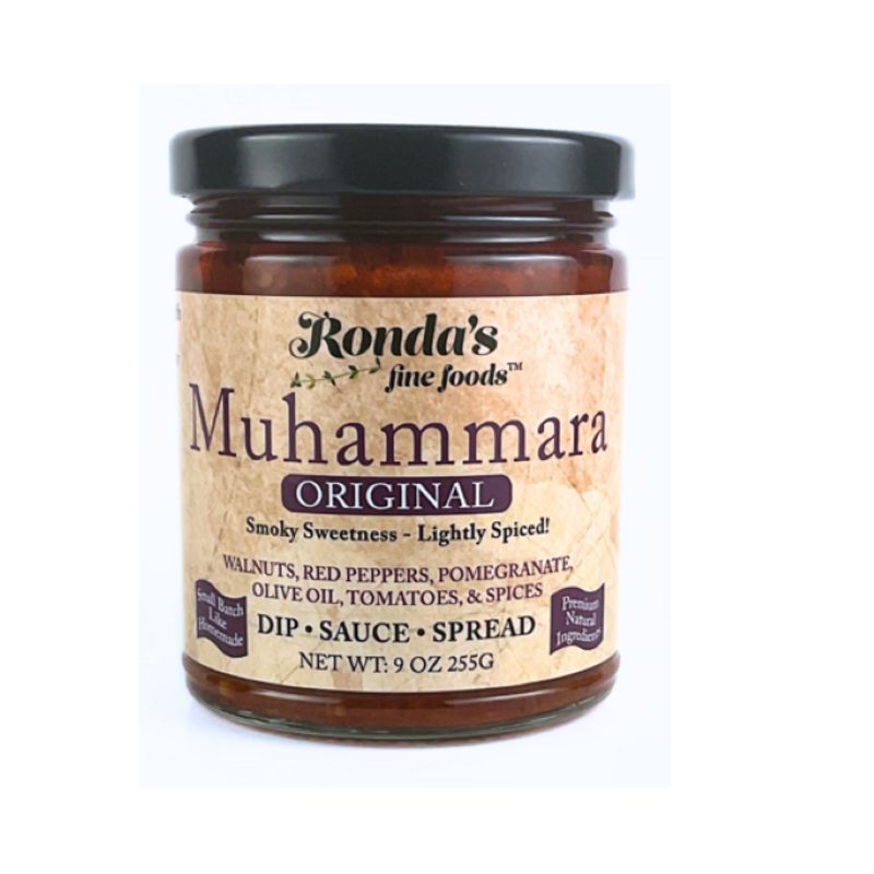 Ronda’s Muhammara is a flavorful blend of walnuts, roasted red peppers, pure olive oil, pomegranate molasses, tomatoes, & spices. It has a nice smoky sweetness and finishes with a hint of spiciness.