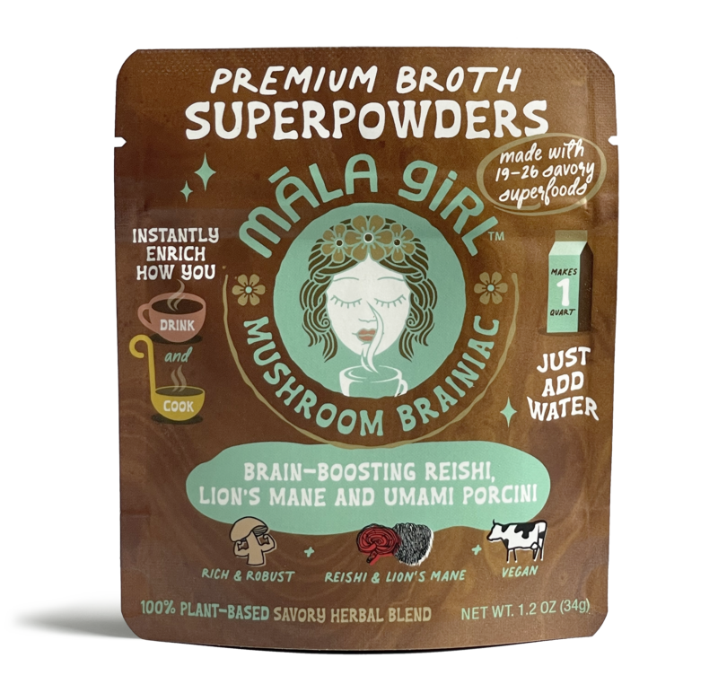 Her featured superpowers of "king of immortality" reishi mushrooms, along with lions mane, and energizing cacao powder and butter are known to help promote: