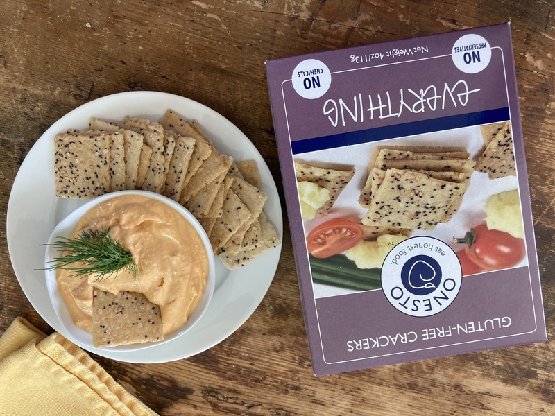 Onesto's Everything Crackers are chock full of flavor and are the perfect size to swipe through hummus, guacamole or a mild cheese. You can also eat them straight out of the box. We do!