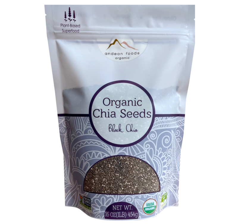 Andean Foods Organic Chia Seeds PREMIUM QUALITY with Omega-3, Non-GMO, Gluten Free, Vegan, Good Source of Fiber 1 lb, 16 oz