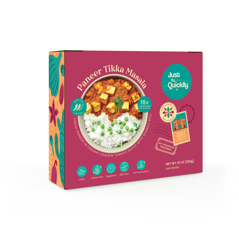 Enjoy the light, creamy goodness of Paneer Tikka Masala. Soft cubes of paneer (fresh cow milk cheese), slowly simmered in a tangy-sweet tomato cream sauce with aromatic spices, onions, tomatoes, ginger, garlic, and a touch of green chilies.