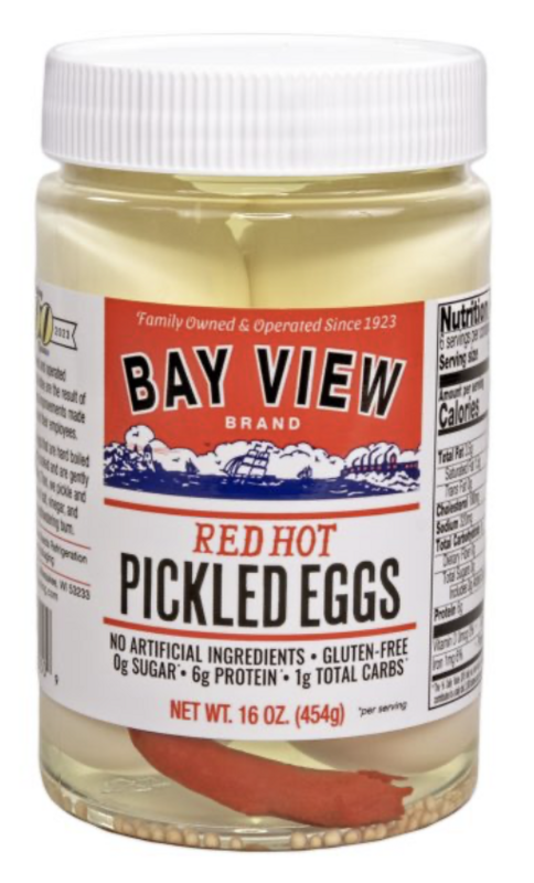 Ingredients: Eggs, Water, Vinegar, Salt, Mustard Seed, Chili Peppers, Flavorings. CONTAINS: EGGS