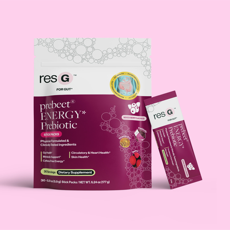 We’re best known for our clinically-studied resB® Lung Support probiotic, which is the first clinically studied formula to combine live probiotic bacteria strains (RSB11®, RSB12®, and RSB13®) with ancient herbs for digestion, immune function, and respiratory health. We also recently launched prebeet®, a daily 4-in-1 prebiotic microbiome boost developed to improve digestion, supercharge your energy, restore skin balance, and strengthen heart health.