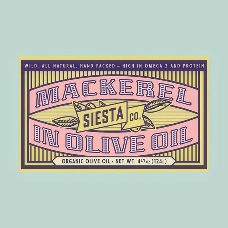 Siesta Co. Mackerel in organic extra virgin olive oil.
